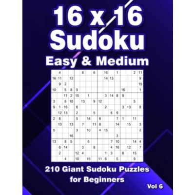 16x16 Large Print Sudoku Puzzles for Beginners: Easy & Medium Puzzle Book with 210
