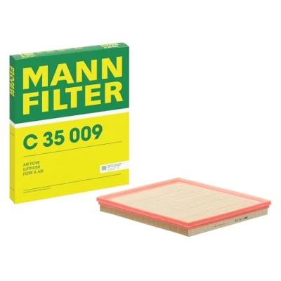 MANN-FILTER Air Filter C 35 009 / Dimensions (mm): A = 342; B = 301; H = 35 / Premium Filter in Original Equipment Quality High-quality MANN-FILTER air filters for clean air intake and optimum protection for your engine, mass air flow sensor & other sensitive components / They meet requirements of modern engine technology Highest dirt holding capacity and dirt separation efficiency, low flow resistance and high pleat stability ensure functional reliability during the entire service interval Looking to find the correct filter? Select: brand, model, vehicle type, and engine type above to see which one fits your vehicle MANN+HUMMEL complies with REACH-regulation + supports the goal of Improved health and safety through the design, manufacturing, usage, disposal and recycling of our products