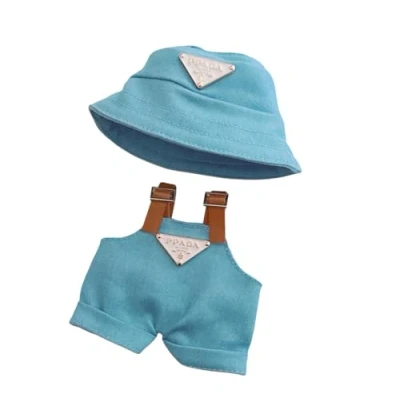 17cm Clothes Set for Labu Doll(NO Doll), Hat & Overalls Accessories Suit, Cute Dress up Unique Style (Blue)