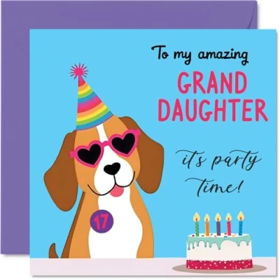 17th Birthday Cards for Girls Doggy Party Happy Card 17 Year Old Girl Goddaughter Sister Step Daughter Granddaughter, 145mm Bday Greeting