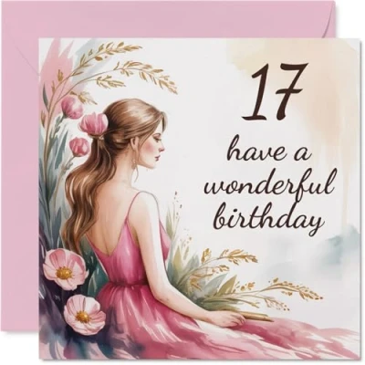 17th Birthday Cards for Girls Flower Girl Happy Card 17 Year Old Sister Niece Great Daughter, 145mm Bday Greeting