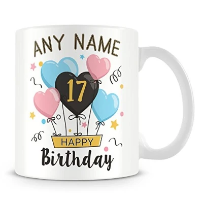 17th Birthday Gift Personalised Mug/Cup Add Name Balloons Design