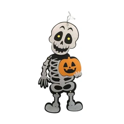 17x47cm Hanging Skeleton with Pumpkin Halloween Decoration