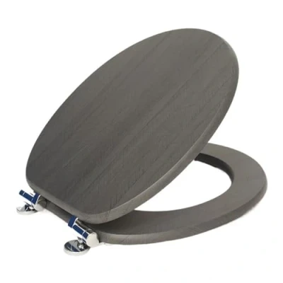 18" MDF Toilet SEAT Universal Adjustable Fit Most Toilets Oval Seat┃Bathroom Standard Wooden WC +Fittings (Grey Wooden)