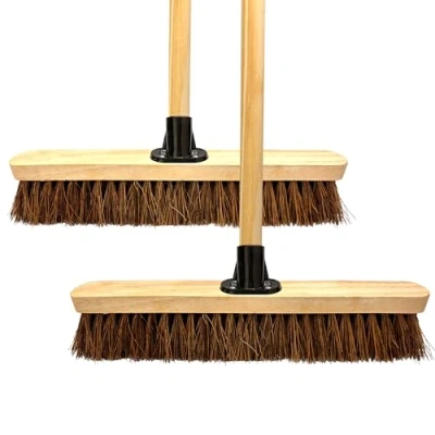 Heavy-Duty Outdoor Broom – Designed for tough outdoor cleaning, this broom features stiff natural bassine bristles and a durable wooden handle for efficient sweeping on hard surfaces like patios, gardens, and driveways. Robust & Long-Lasting – The strong wooden handle and stiff bassine bristles ensure durability, making it ideal for heavy-duty cleaning tasks in outdoor, industrial, or commercial environments. Multi-Purpose Stiff Bristle Broom – Perfect for sweeping leaves, dirt, and debris from yards, decking, garages, and patios. The wooden head provides stability, while the natural bassine bristles offer tough cleaning action. Lightweight & Easy to Use – With a 120cm long wooden handle, this outdoor brush provides excellent reach while remaining lightweight for easy handling. Ideal for cleaning decking grooves, garden paths, and tiled surfaces. Pack Includes – This cleaning broom set includes an 18-inch wide broom head with stiff bassine bristles and a 120cm wooden handle. Ships unassembled; simply push the handle into the broom head for quick setup.