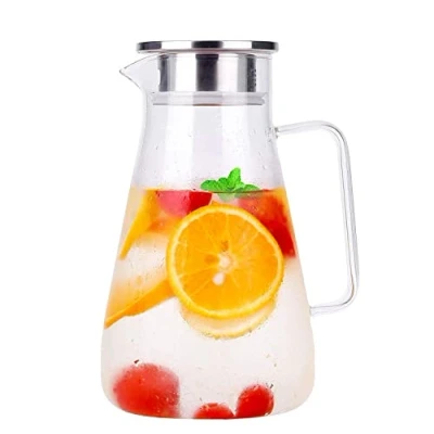 1800ml Carafe Glass, Uten Pitcher Jug Lead Free Borosilicate Glass Kettle with Crystal Handle and Stainless Steel Lid Cover for Milk, Red Wine, Cold Water, Fruit Juice, Hot Coffee, Ice Drinks etc