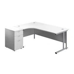 1800X1200 Twin Left Hand Radial Desk White Silver + High Ped