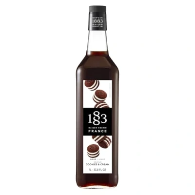 1883 Maison Routin Premium Cookies & Cream Syrup Flavoured Coffee Syrup, Desserts, Milkshakes, Cocktails, Vegan Friendly, Allergen Free, No Artificial Colours, 1L Glass Bottle