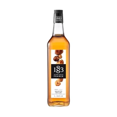 1883 Maison Routin Premium Roasted Hazelnut Syrup Flavoured Coffee for Lattes, Desserts & Cocktails, Vegan Friendly, No Artificial Colours, 1L Glass Bottle