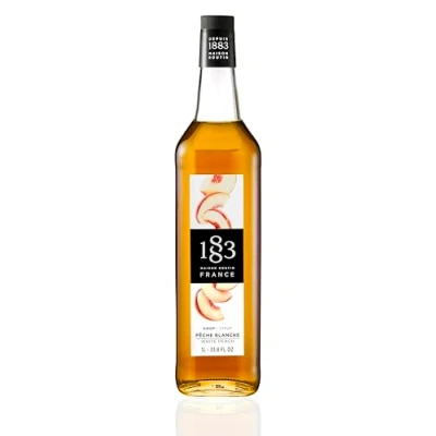 1883 Maison Routin Premium White Peach Syrup for Cocktails, Mocktails, Iced Tea, Smoothies, Desserts & Bubble Tea Glass 1L