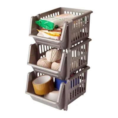 18cm Stacking Baskets Storage Veg Rack Set of 3 Silver