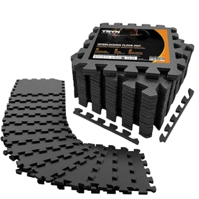 PREMIUM FLOOR PROTECTION, ENGINEERED FOR PERFORMANCE---Protect your floors with the TRYN Fitness Mat, a precision-crafted 18-piece interlocking EVA foam mat set. Each tile measures 31cm x 31cm x 10mm, providing durable, non-slip protection that absorbs both impact and noise—ideal for creating a safe, stable training surface. LAB-TESTED | NON-TOXIC | BUILT TO LAST---Made from high-density EVA foam, every TRYN Fitness Mat is lab-tested, BPA-free, and odourless, ensuring a safe, long-lasting flooring solution for all types of workouts and spaces after many years, safe for kids. MODULAR DESIGN, INFINITE CONFIGURATION---Each set includes 18 interlocking tiles with edge pieces, covering approximately 1.7m². The puzzle-lock system allows for easy installation and limitless expansion, so you can tailor your setup to your space—whether for strength training, yoga, or a complete home gym. VERSATILE FOR ANY SPACE---Perfect for home gyms, garages, and functional training areas, the TRYN Fitness Mat combines a durable EVA base with sound-reducing and shock-absorbing properties—protecting your floors from weights, equipment, and impact. WATERPROOF, SOUND-ABSORBENT & ANTI-SLIP---The textured surface provides grip and comfort, while being waterproof, easy to clean, and resistant to wear. Built for everyday performance and effortless maintenance.