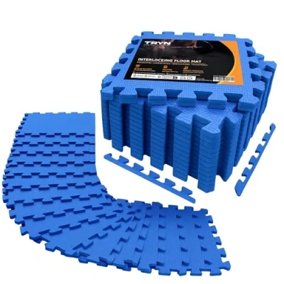 PREMIUM FLOOR PROTECTION, ENGINEERED FOR PERFORMANCE---Protect your floors with the TRYN Fitness Mat, a precision-crafted 18-piece interlocking EVA foam mat set. Each tile measures 31cm x 31cm x 10mm, providing durable, non-slip protection that absorbs both impact and noise—ideal for creating a safe, stable training surface. LAB-TESTED | NON-TOXIC | BUILT TO LAST---Made from high-density EVA foam, every TRYN Fitness Mat is lab-tested, BPA-free, and odourless, ensuring a safe, long-lasting flooring solution for all types of workouts and spaces after many years, safe for kids. MODULAR DESIGN, INFINITE CONFIGURATION---Each set includes 18 interlocking tiles with edge pieces, covering approximately 1.7m². The puzzle-lock system allows for easy installation and limitless expansion, so you can tailor your setup to your space—whether for strength training, yoga, or a complete home gym. VERSATILE FOR ANY SPACE---Perfect for home gyms, garages, and functional training areas, the TRYN Fitness Mat combines a durable EVA base with sound-reducing and shock-absorbing properties—protecting your floors from weights, equipment, and impact. WATERPROOF, SOUND-ABSORBENT & ANTI-SLIP---The textured surface provides grip and comfort, while being waterproof, easy to clean, and resistant to wear. Built for everyday performance and effortless maintenance.