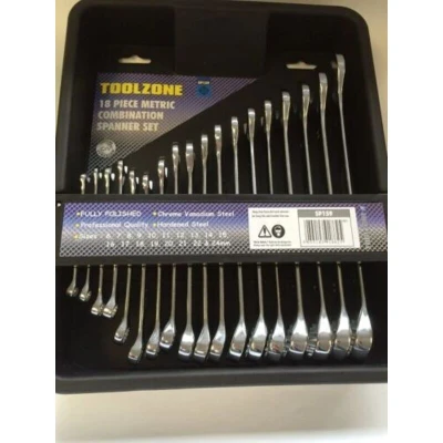 Combination Spanner Set Professional Quality Metric Sizes Includes Storage Case Fully Polished & Hardened Chrome Vanadium Steel Sizes Included: 6mm, 7mm, 8mm, 9mm, 10mm, 11mm,12mm,13mm,14mm, 15mm, 16mm, 17mm, 18mm 19mm, 20, 21,22 & 24mm Suitable For Diy/Home Use Please Check Out Our Other Items