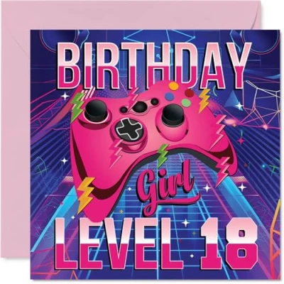 18th Birthday Cards for Women Gamer Level Happy Card 18 Year Old Woman Sister Cousin Daughter Granddaughter, 145mm Bday Greeting