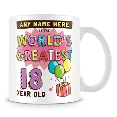 18th Birthday Gift for Women Personalised Mug/Cup Add Name Worlds Greatest Design Pink