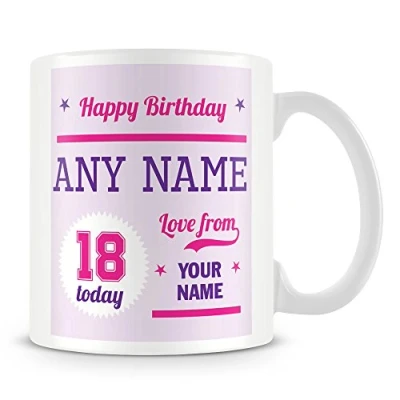 18th Birthday Gift Personalised Mug/Cup Add Name Pink