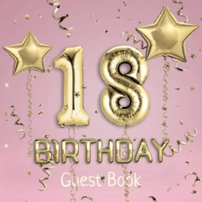 18th Birthday Guest Book: Message Logbook and Book for Party 100 Pages Guests to leave their Comments & Wishes Pink Cover with Golden Balloons