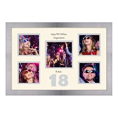 18th Birthday Photo Frame 4"x4" x4 and 5"x5" 964D (Brushed Silver Finish Cream Mount Grey Inside)