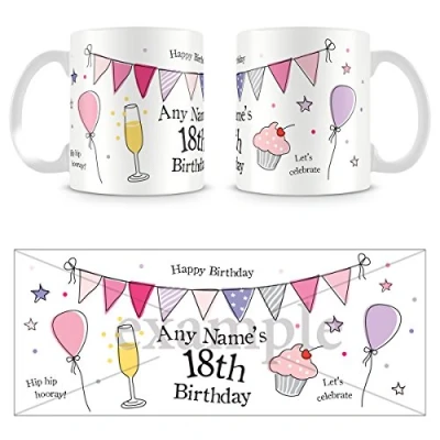 18th Birthday Present for Women Personalised Mug/Cup Add Name Party Design Pink