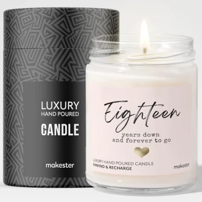 18th Wedding Anniversary Candle Gift Luxury Soy Wax Vanilla, Jasmine, Sugared Almond Makester