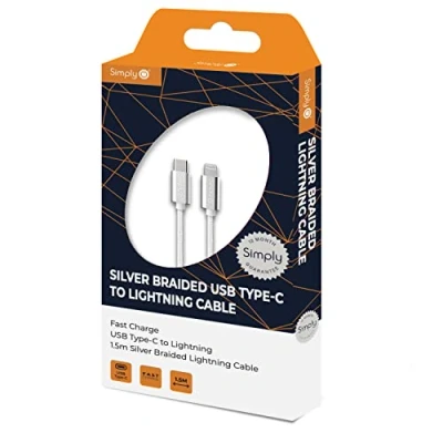 18x Simply Type C to iPhone Lightning Silver Braided 1.5m Cable TCIP02