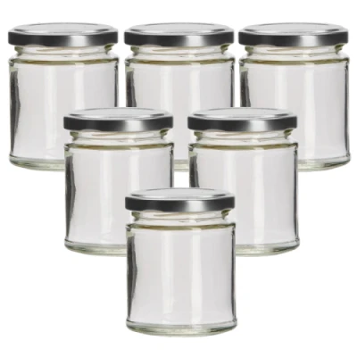 190ml Round Glass Food Jar With Silver Twist Off Lid Pack Of 6