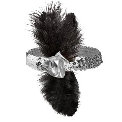 1920s Silver Sequin Headbands Flower & Feat Hat for 20s 30s Flapper Fancy Dress