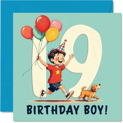 19th Birthday Cards for Men Balloon Boy Happy Card 19 Year Old Man Cousin Grandson Nephew Colleague, 145mm Bday Greeting