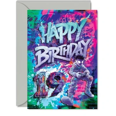 19th Birthday Cards for Men Women Epic Gamer Happy Card 19 Year Old Man Woman Uncle Cousin Daughter Niece, 5x7 Inch Bday Greeting