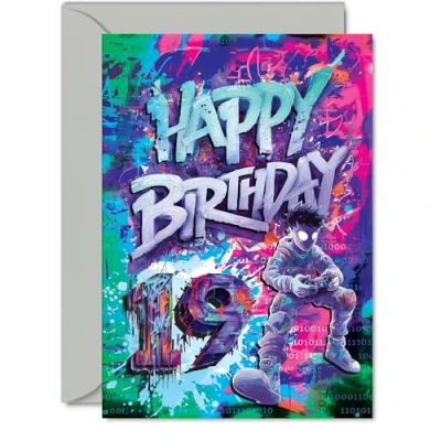 19th Birthday Cards for Men Women Epic Gamer Happy Card 19 Year Old Man Woman Uncle Cousin Daughter Niece, A5 Bday Greeting