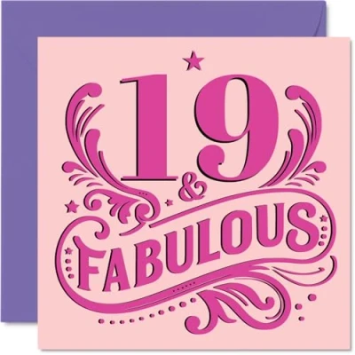 19th Birthday Cards for Women Fabulous Happy Card 19 Year Old Woman Daughter Cousin Sister Granddaughter, 145mm Bday Greeting
