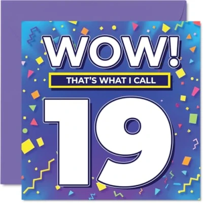19th Birthday Cards for Women Men WOW Thats What I Call Happy Card 19 Year Old Woman Man Uncle Cousin Daughter Niece, 145mm Bday Greeting