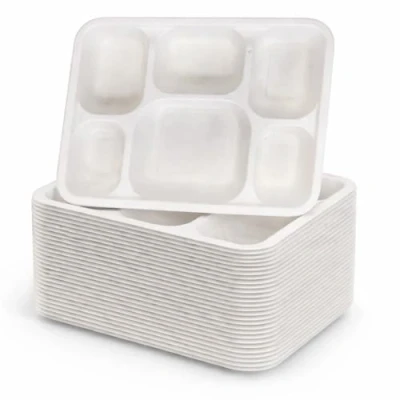 1ABOVE 6 Compartment Bagasse Food Trays 25 Pack Disposable Sugarcane Fibre Dinner Plates Biodegradable & Compostable, Eco Friendly