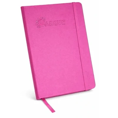 1ABOVE A4 Soft Feel Notebook with Lined Pages Hardback Journal Elastic Closure and Ribbon Paper Pocket 80gsm 160 (80 Sheets) PINK