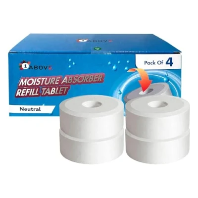 1ABOVE Dehumidifier Refill Tabs 4 Pack Universal Fit for 450g Moisture Absorber Units or 1L Traps Fights Damp, Condensation & Musty Smells Home, Garage, Bathroom, Office Use