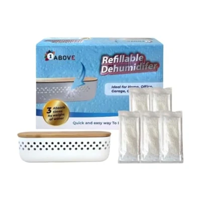 STYLISH WOODEN DESIGN: Features a sleek and modern wooden exterior, perfect for blending into any home or office decor. HIGH ABSORPTION CAPACITY: Absorbs up to three times its weight in water, effectively reducing moisture levels. INCLUDES 5 REFILLS: Comes with 5x180g refills for long-lasting and continuous moisture control. PREVENTS DAMP & MOULD: Helps stop damp, mould, mildew, and condensation, ensuring a healthier environment VERSATILE USE: Ideal for use in homes, offices, garages, caravans, boats, and other confined spaces. ECO-FRIENDLY & REFILLABLE: Cost-effective and sustainable solution for managing excess moisture., Weight: 3.637627323 Pounds, Manufacturer: 1ABOVE