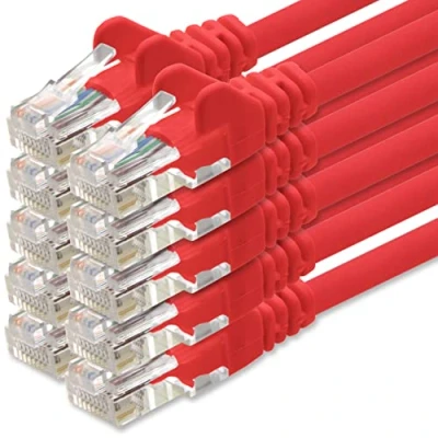 1aTTack Cat6 Ethernet Patch Lan Cable Rj45 Plug Gigabit Cat 6 Cord red 10 pieces 5m