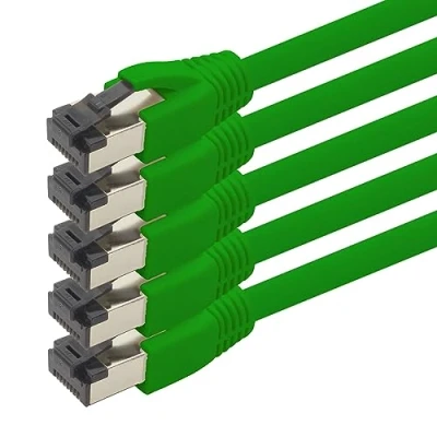 1aTTack.de 0.25m Cat 8 Network Cable CAT8 Green Pack of 5 Cat.8 Lan 2000 MHz 40 Gbit s 40GBase T Poe+ Patch Ethernet LSZH x 0.25 Meter