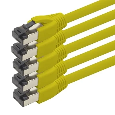 1aTTack.de 0.5m Cat 8 network cable CAT8 yellow pack of 5 Cat.8 Lan 2000 MHz 40 Gbit s 40GBase T Poe+ patch Ethernet LSZH x 0.5 meter