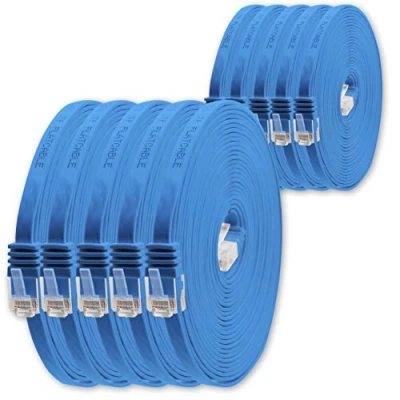 1aTTack.de 2m Blue Cat.6 Flat Network Cable Pack of 10 Ultra Patch 1000 Mbit/s Gigabit LAN (RJ45) Slim