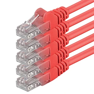 1aTTack.de 3 meter Cat 6 Ethernet Cable Gigabit RJ45 LAN Patch Cord Compatible with Internet, Router, Modem, Smart TV, PC & Laptop Switch Modem red 5 pieces