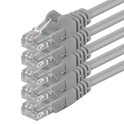 7.5m - gray - 5 pieces - Cat6 brands - network cable patch cable 2 RJ-45 plugs with anti-kink cover, gold-plated contacts Cat6 network cable high quality network cable Ethernet cable Dsl cable compatible with Cat5 Cat5e Cat6a Cat7 Cat8 cable Cat6 patch cable for Smart TV Sat Receiver Nas devices Powerlan Ethernet drive ISDN telephones Internet radio patch panel hub switch network socket server patch panel device media player Cat.6 network cable connects Internet WiFi router repeater Telekom DSL modem notebook laptop PC computer network printer printer print server patch panel and devices with Rj45 connection High quality ideal for the office area Office and business Suitable for Base-T Ethernet networks 10/100/1000/10000 Mbit Nas devices Powerlan Ethernet drive ISDN telephones