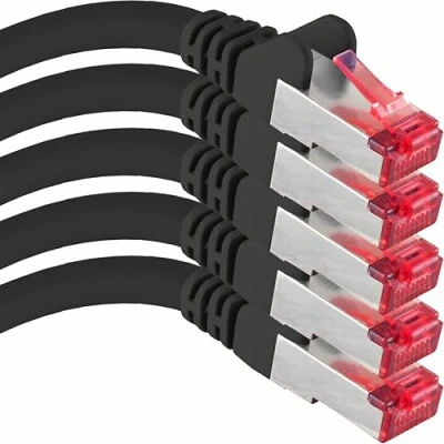 1aTTack.de CAT6 network cable 5x 0.5m shielding SFTP CAT.6 RJ45 patch Ethernet DSL LAN router switch modem panel black 5 pieces