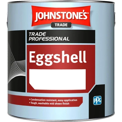Eggshell Johnstone's Trade Eggshell paint is a premium quality, alkyd-based mid-sheen finish, formulated for interior use on wood and metal surfaces. Available in a vast range of thousands of colours thanks to our colour tinting system, it provides a smooth, even surface that is washable and resistant to condensation. Johnstone's Trade Eggshell provides coverage of approximately 18-20 square metres per litre, depending on the nature and porosity of the surface, and is recoatable after 16-24 hours in normal drying conditions. The product is easy to apply by brush or roller. USE ON - Interior SUBSTRATE - Iron, Steel, Softwood, Timber, Wood APPLICATION FINISH - Eggshell TYPE - Solvent Based RECOAT - 16-24 Hours COVERAGE - up to 20 sqm / Litre