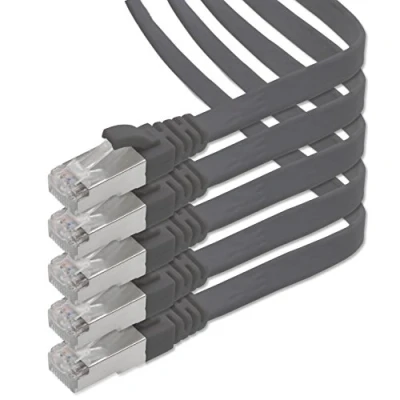 1 m - black - pack of 5 Cat7 network cable, thin, flat, narrow patch cable, flat cable, flat ribbon cable, Ethernet cable, flat slim, compatible with Cat5 Cat5e Cat6 Cat6a Cat8 cable Network cable patch cable Ethernet cable for all internet speeds Cat.7 patch cable is extremely thin. Thanks to the flat design, these network cables can be laid under carpets, floors, laminate, parquet, skirting boards, wall strips, e.g. for Smart TV satellite receivers Cat.7 network cable easily connects Internet WiFi router repeater Telekom DSL modem Fritzbox notebook laptop PC computer gaming console Internet radio patch panel hub switch Network socket server patch panel multimedia device media player network printer printer print server patch panel and other devices with Rj45 connection Suitable for Base-T Ethernet networks 10/100/1000/10000 Mbit Nas devices Powerlan Ethernet drive card stick ISDN telephones