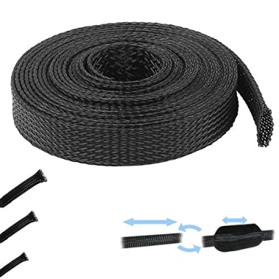 1M BLACK EXPANDABLE BRAIDED SLEEVE 1/8" 1/4" 1/3" 1/2" 3/4" 1" 2" ELECTRICAL OUTER SHEATH WIRE CABLE PROTECTION (1/4" (5mm > 10mm))