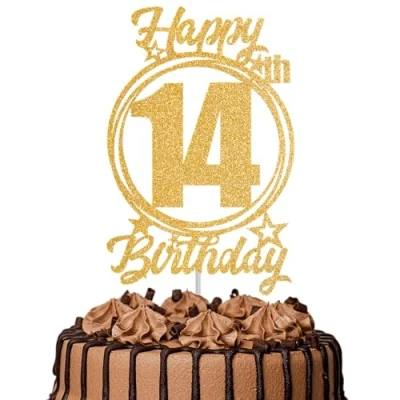 1Pc Happy 14th Birthday Cake Topper Gold Glitter “Cheers to 14 Years Decoration & Fabulous for Women Men Party or Anniversary Decor Supplies