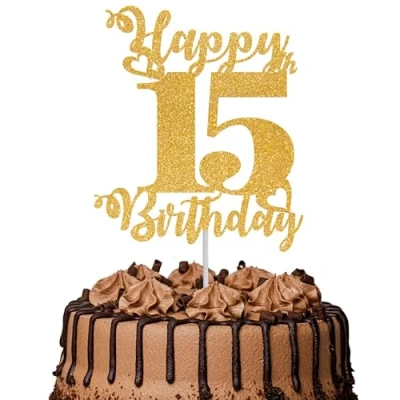 1Pc Happy 15th Birthday Cake Topper Glitter Cheers to 15 Years Fabulous Decoration for Party Decorations Supplies Gold