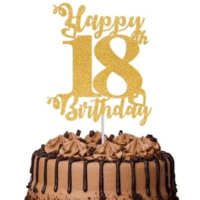 1Pc Happy 18th Birthday Cake Topper Glitter Cheers to 18 Years Fabulous Decoration for Party Decorations Supplies Gold